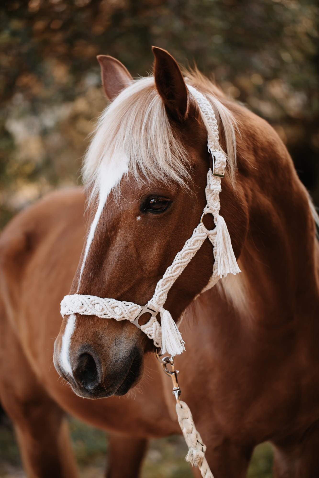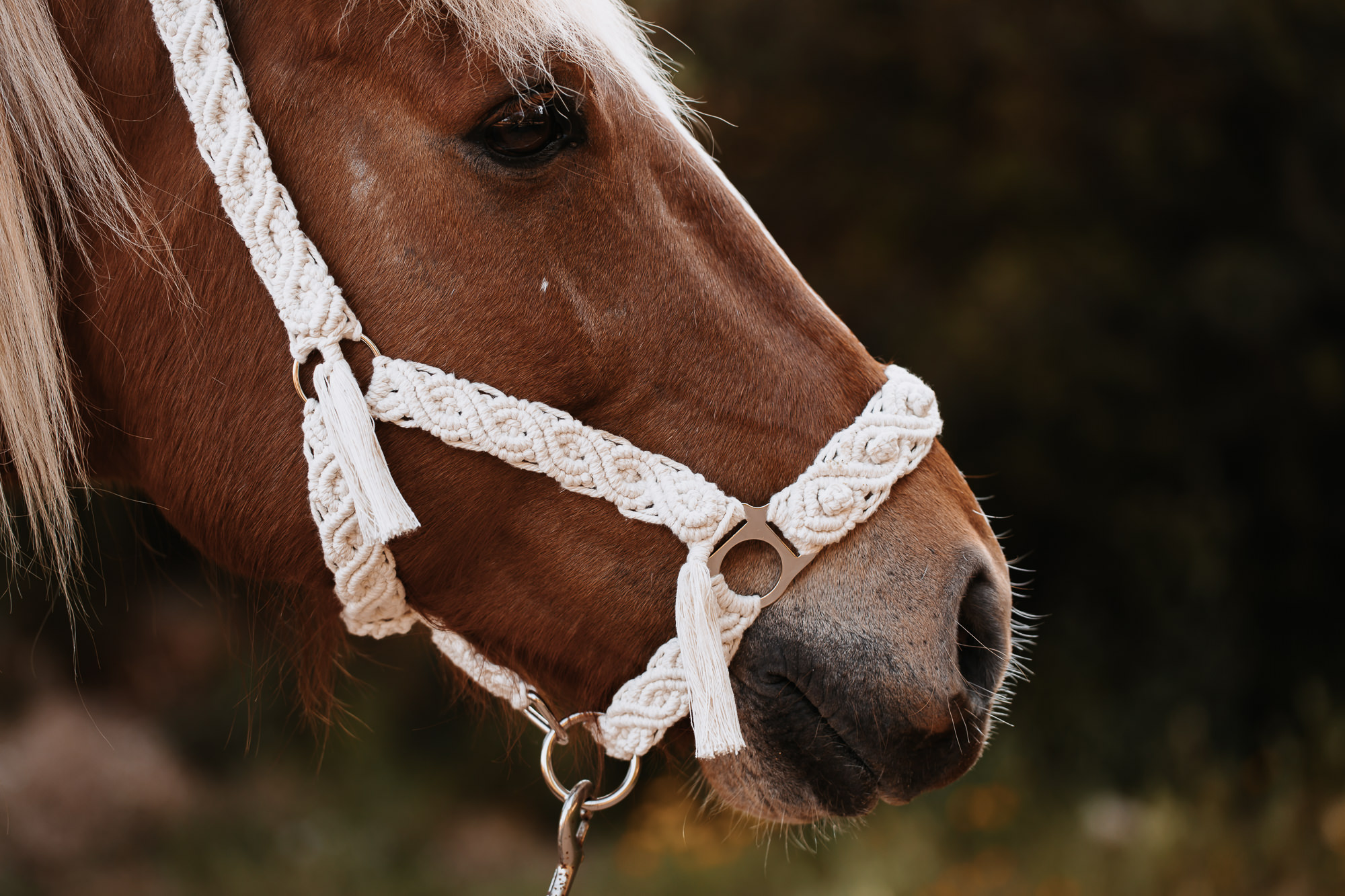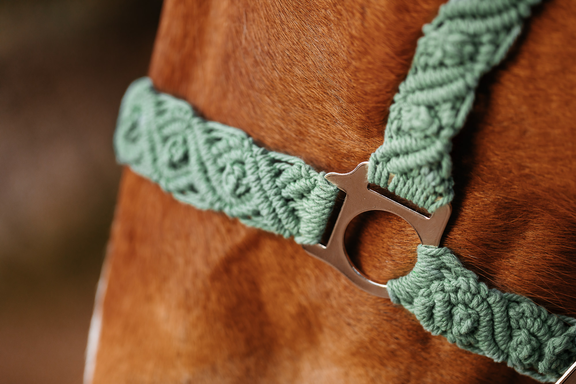 Detail photo of our Mandala model on natural color with fringes on a brown horse