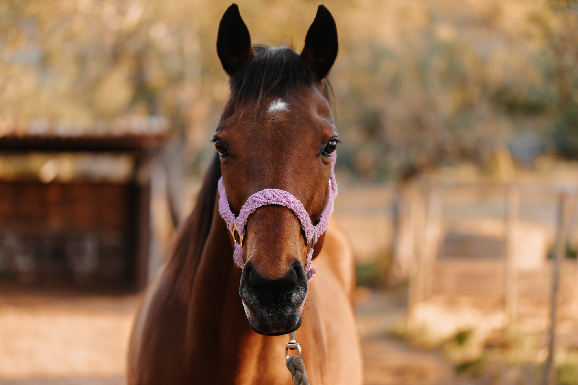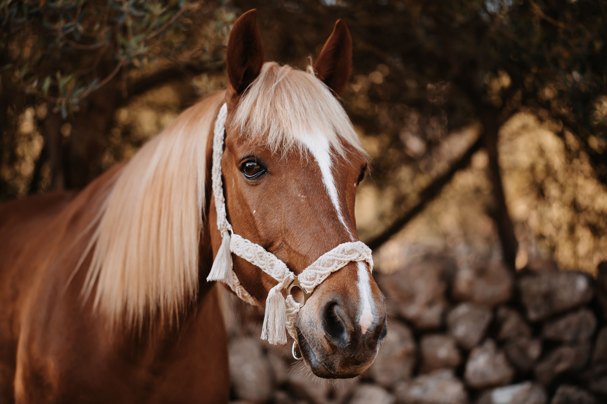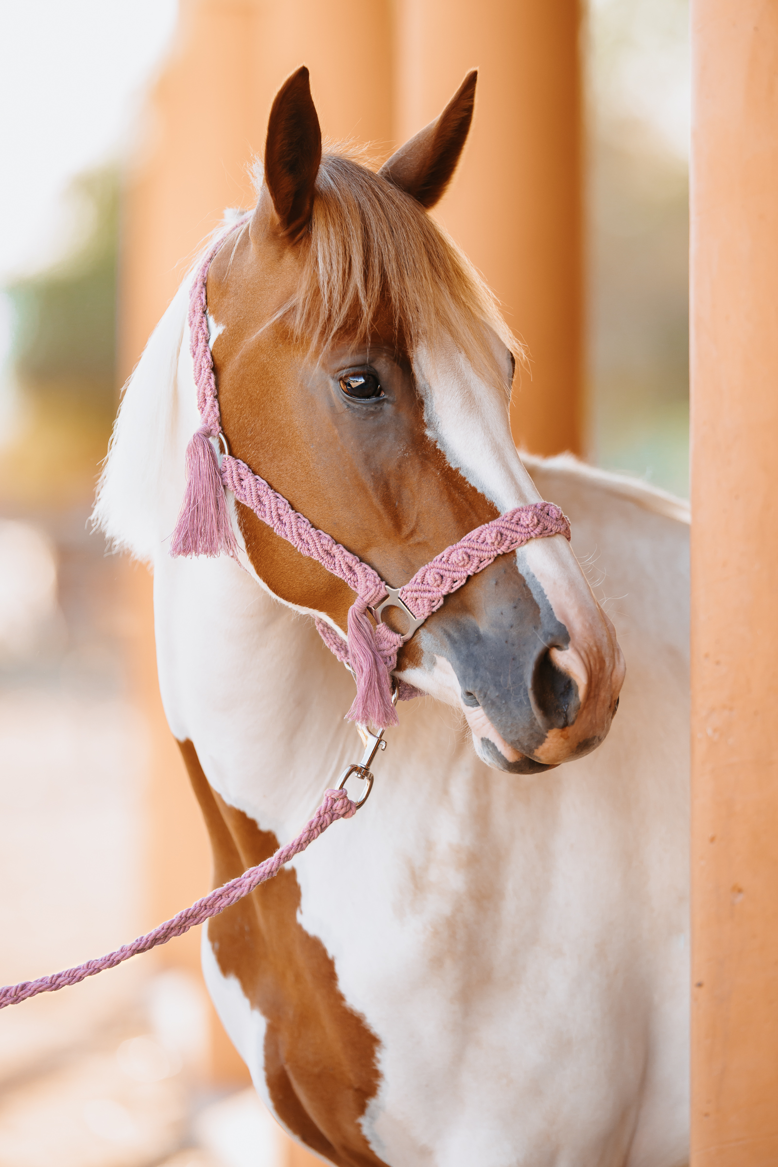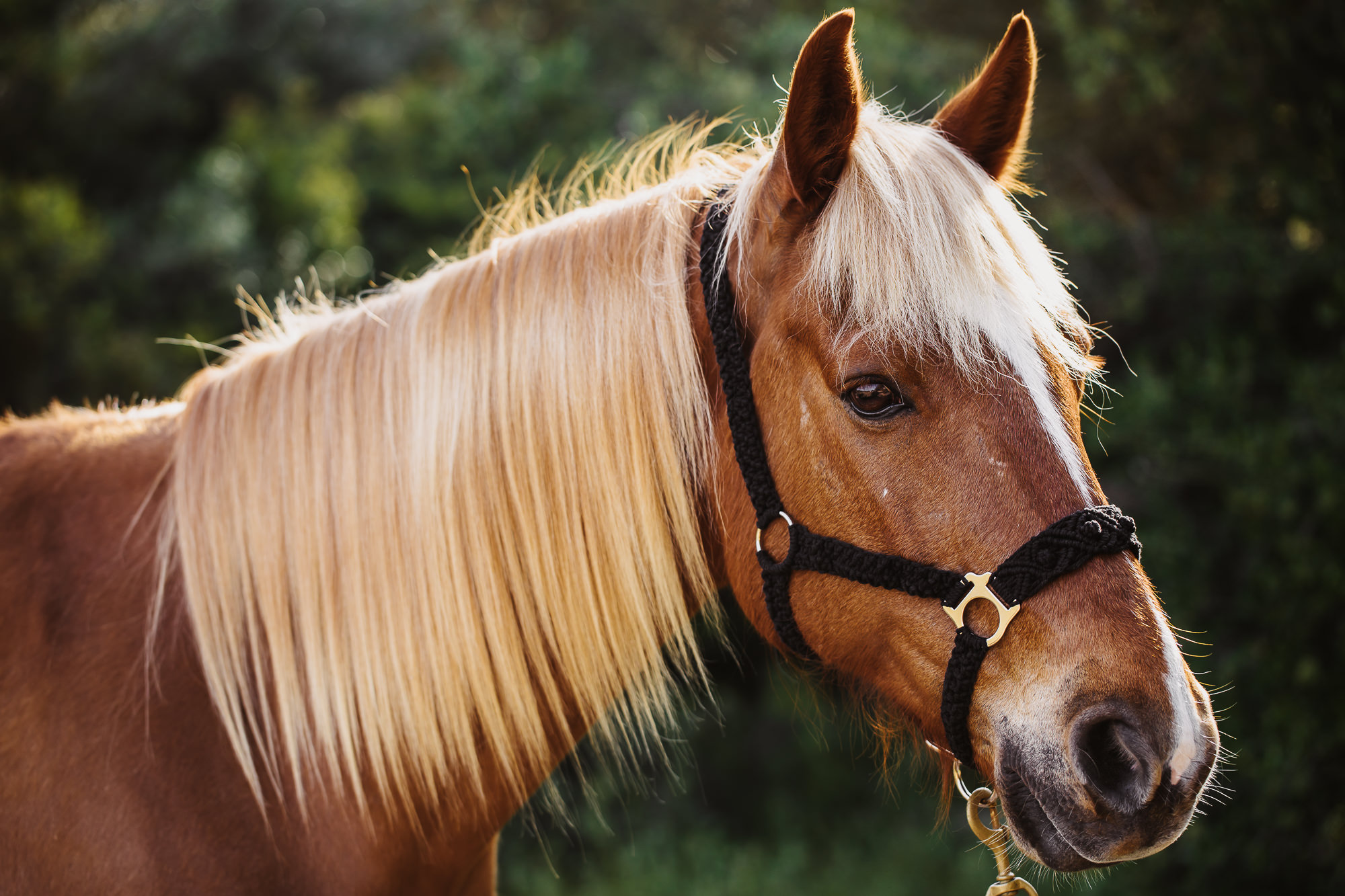 Detail photo of our Mandala model on natural color with fringes on a brown horse