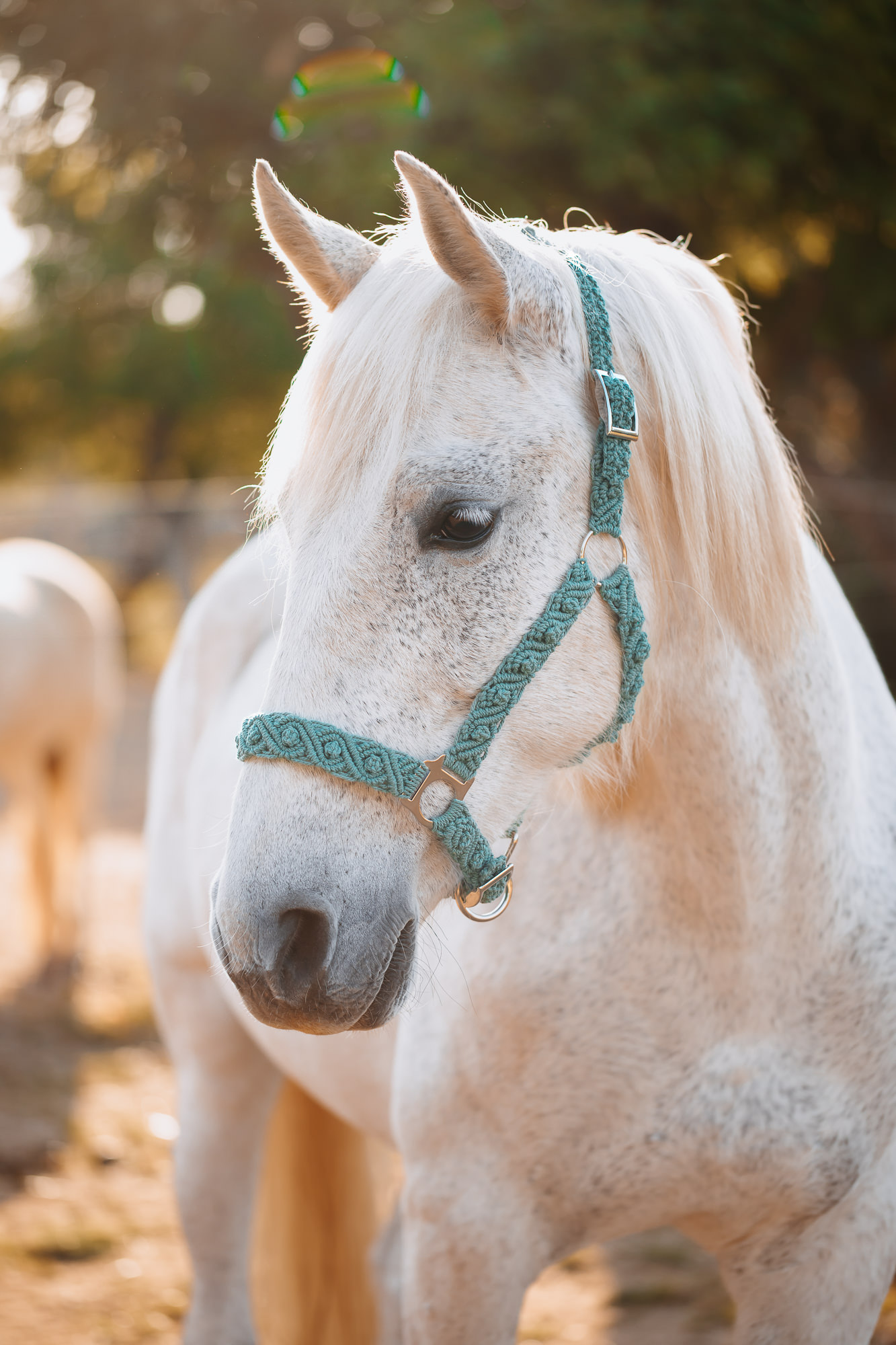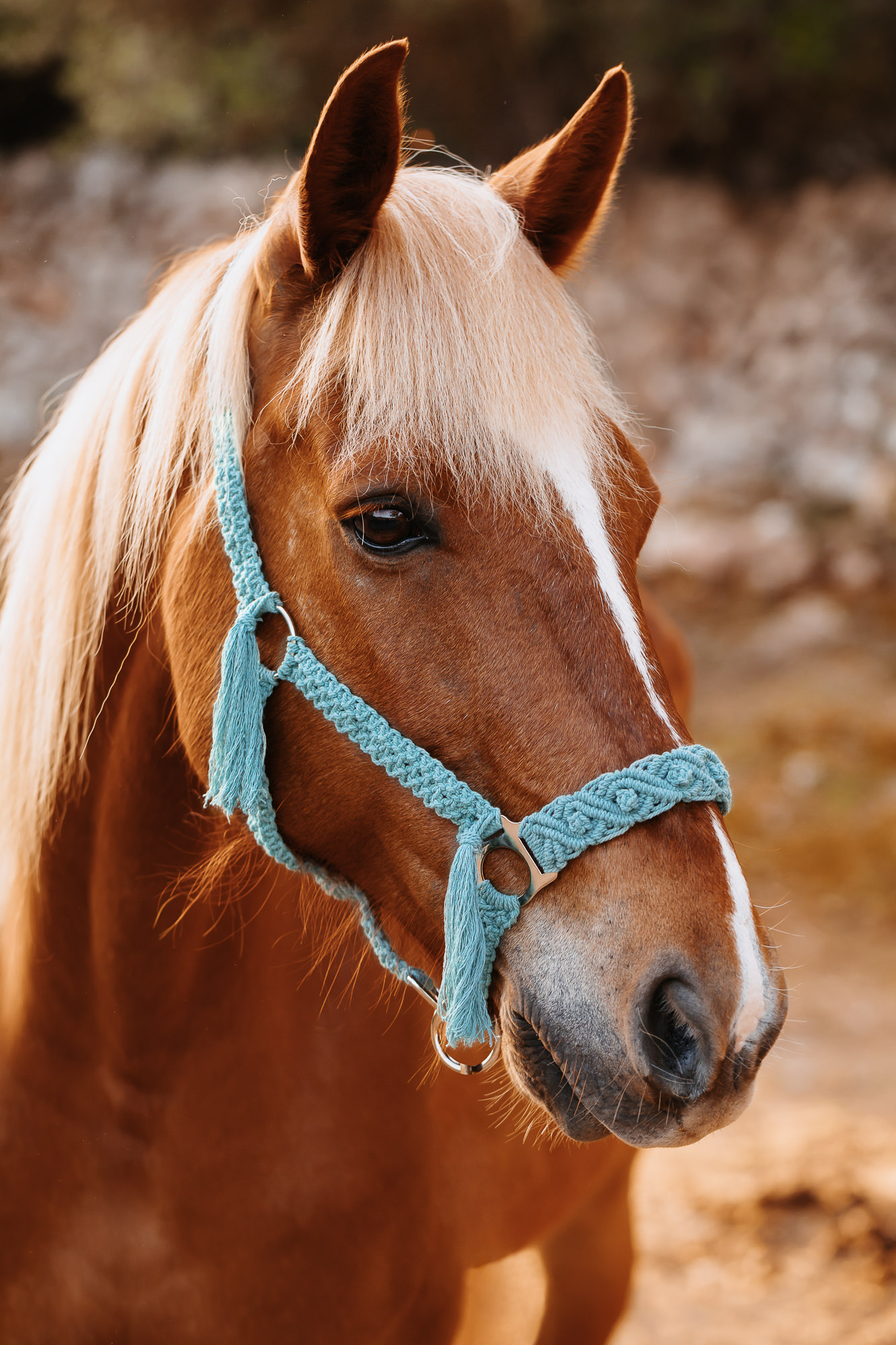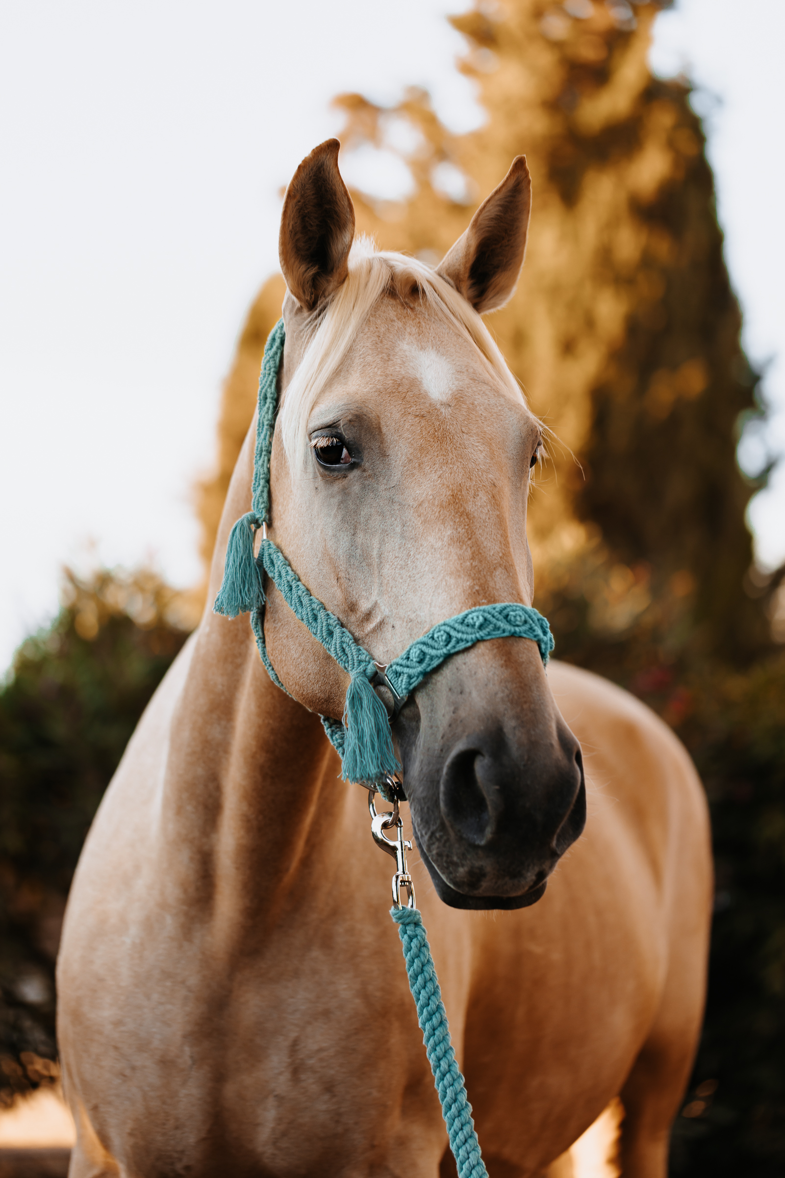 Our Mandala model in bluegreen with fringes on a palomino horse